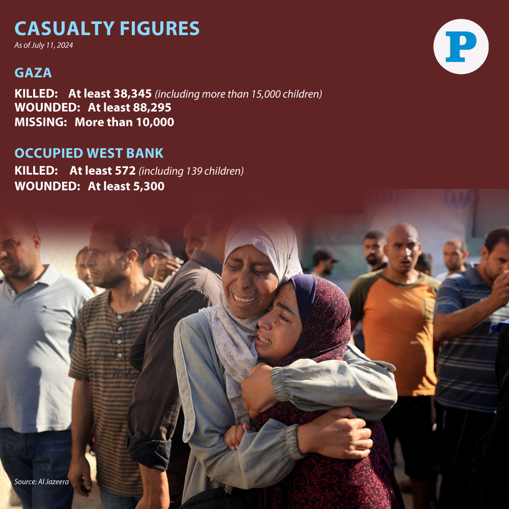Gaza: The Israeli occupation forces (IOF) murdered at least 38,345 Palestinian civilians and injured at least 88,295 others since the beginning of its genocide on the Gaza Strip, which has been ongoing for over nine months.