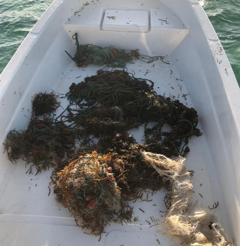 On Twitter, the Ministry posted images of a pile of abandoned fishnets which were floating in Qatari waters.