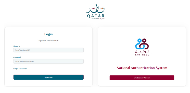 Users can login to the website following the e-services.visitqatar.qa, after which they can create a new account or login using their personal National Authentication system credentials.