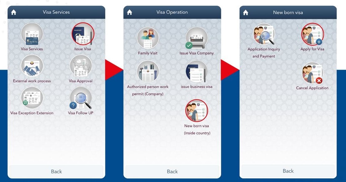 Visa Service for Newborn (for a mother inside the country on a family visit visa): Family visit visa holders can take advantage of this service when a mother on a family visit visa gives birth to a child inside the country. If conditions are met, the host can apply for a family visit visa of the same type, issued to the mother, for the newborn baby.