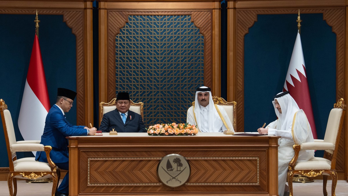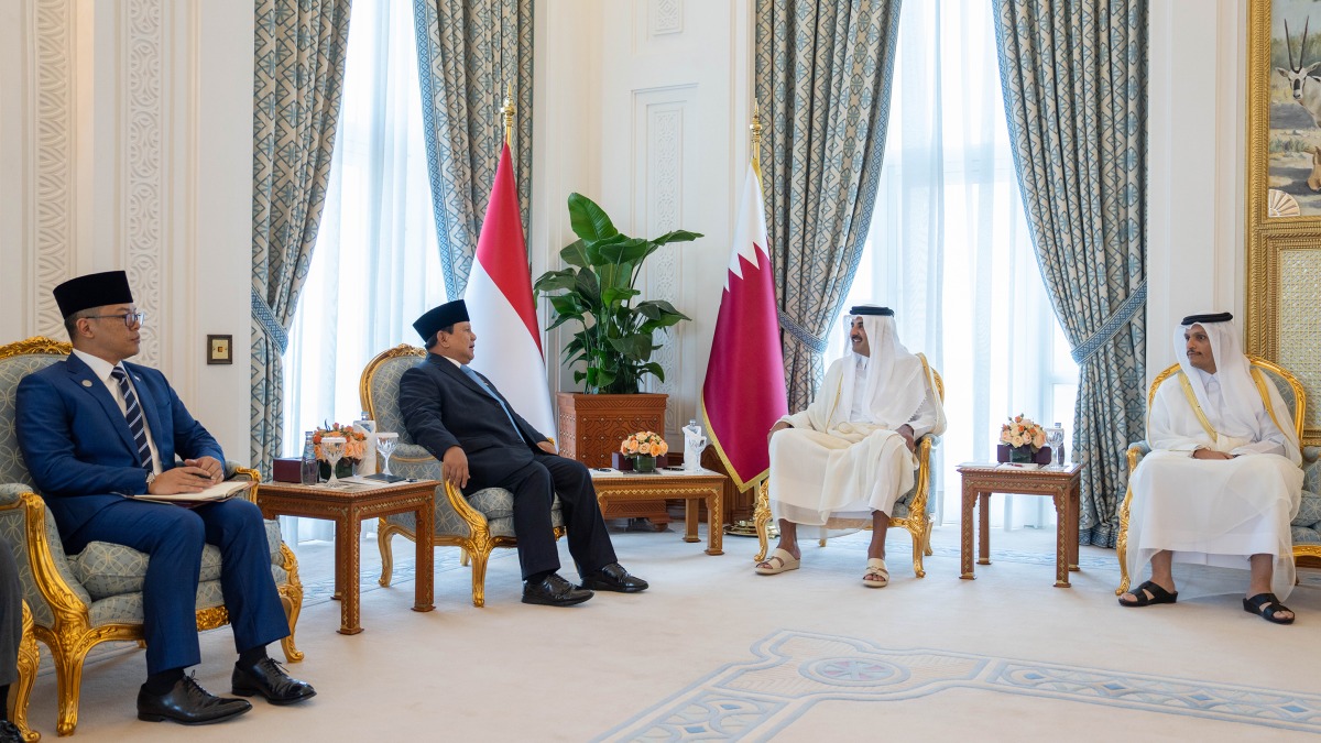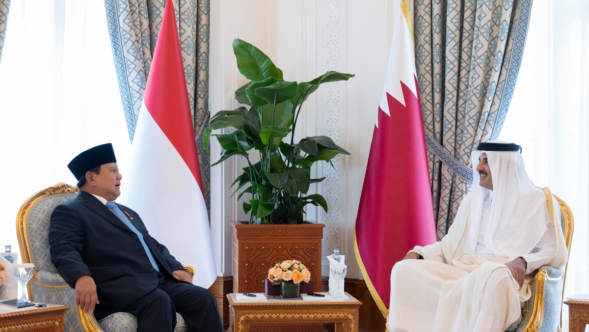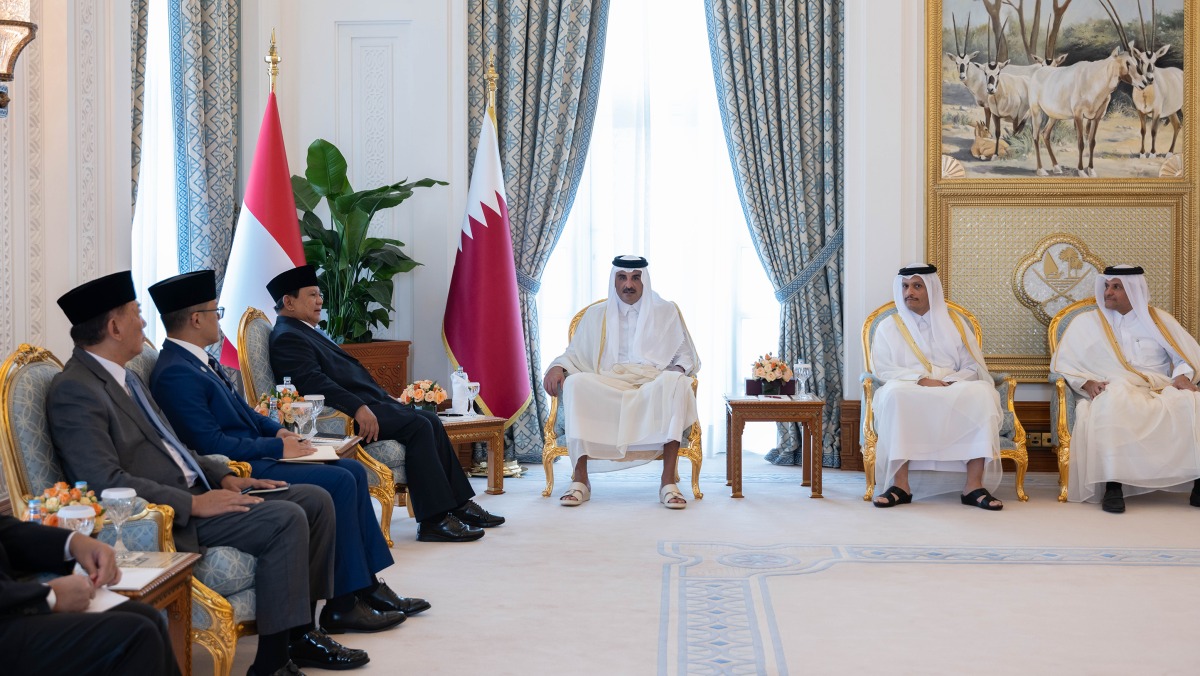 Doha, Qatar: The Amir HH Sheikh Tamim bin Hamad Al-Thani held Sunday at his Amiri Diwan office a session of official talks with President of the Republic of Indonesia HE Prabowo Subianto.