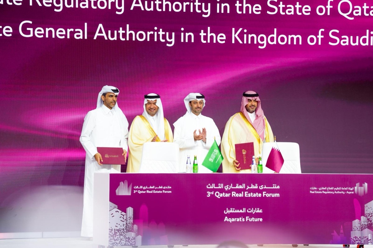 On the sidelines of the 3rd Qatar Real Estate Forum, a memorandum of understanding (MoU) was signed in the presence of Minister of Municipality H E Abdullah bin Hamad bin Abdullah Al Attiyah and Minister of Municipalities and Housing and Chairman of the Real Estate General Authority (REGA) of Saudi Arabia H E Majid bin Abdullah Al-Hogail aiming at enhancing cooperation in legislative and technological fields, as well as aligning national efforts to advance the real estate sector in both countries.