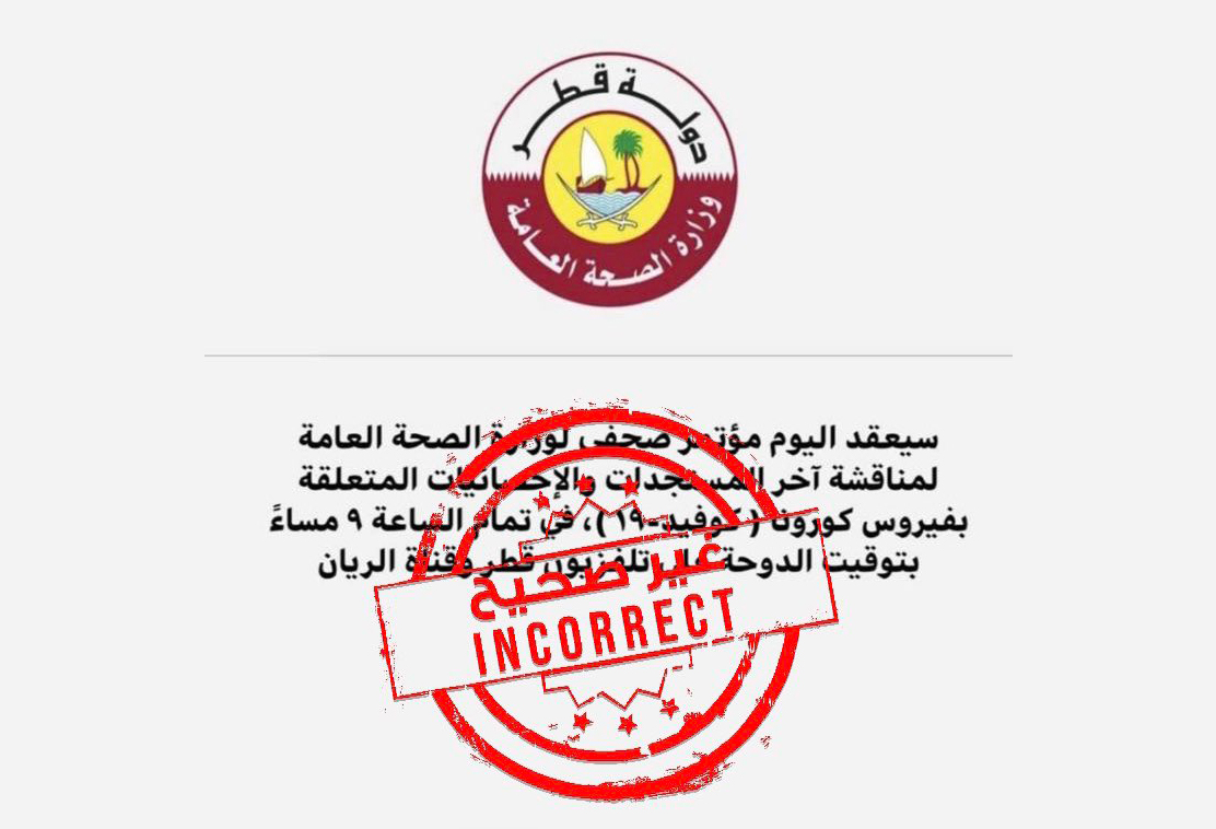 Many people were seen sharing the incorrect image in Arabic with ministry logo saying a press conference will be held at 9pm on Qatar TV and Al Rayyan TV.