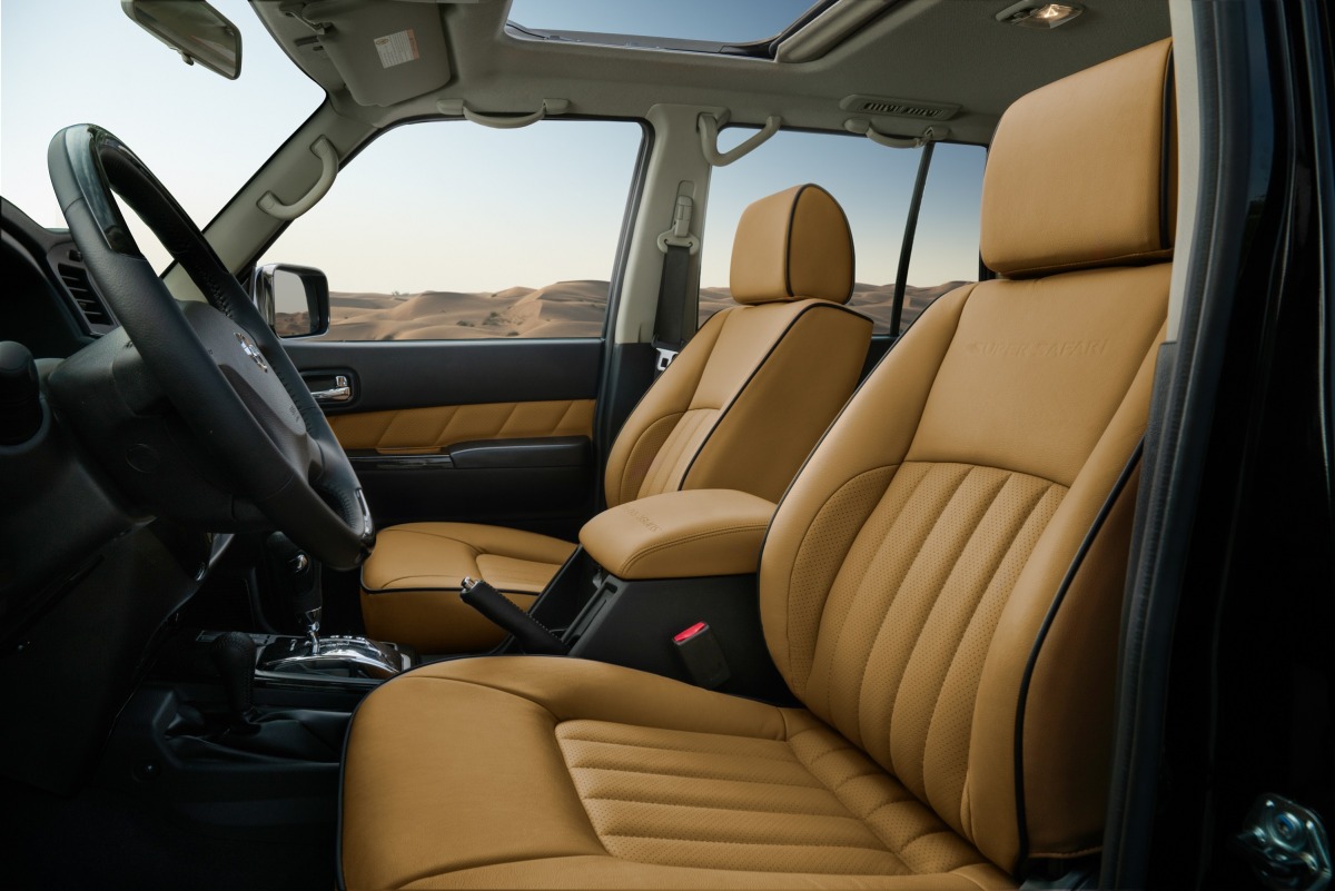 The rugged appeal of the Patrol Super Safari is available with a choice of three bold exterior colours – black, white, or gold – with a unique choice of grey or gold accents across the roof, bumpers, wheel arches, and spare tyre cover for drivers to create a combination of their choice. The striking ‘Super Safari’ decal along the side of the car is complemented by a bold set of 17-inch diamond cut alloy wheels that contribute to the SUV’s head-turning presence.