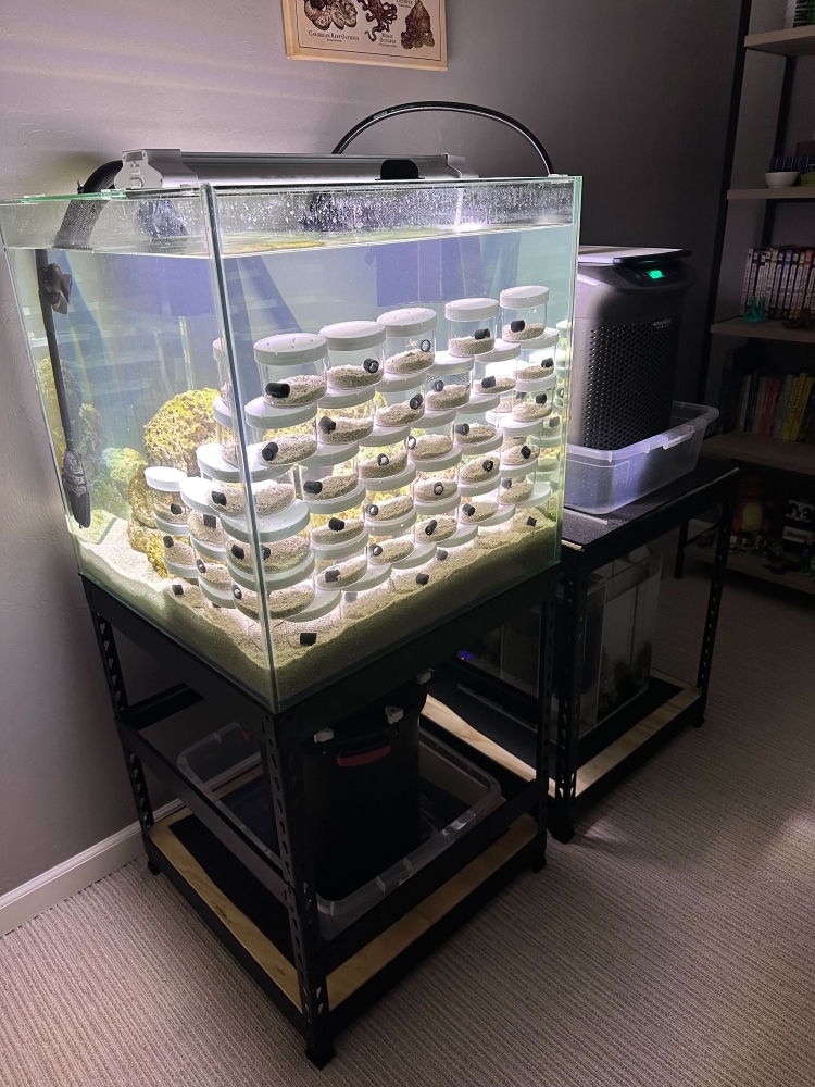 By the end of February, the Cliffords found themselves with 50 baby octopuses, which lived in tiny containers inside Terrance’s tank. Photo courtesy of Cameron Clifford