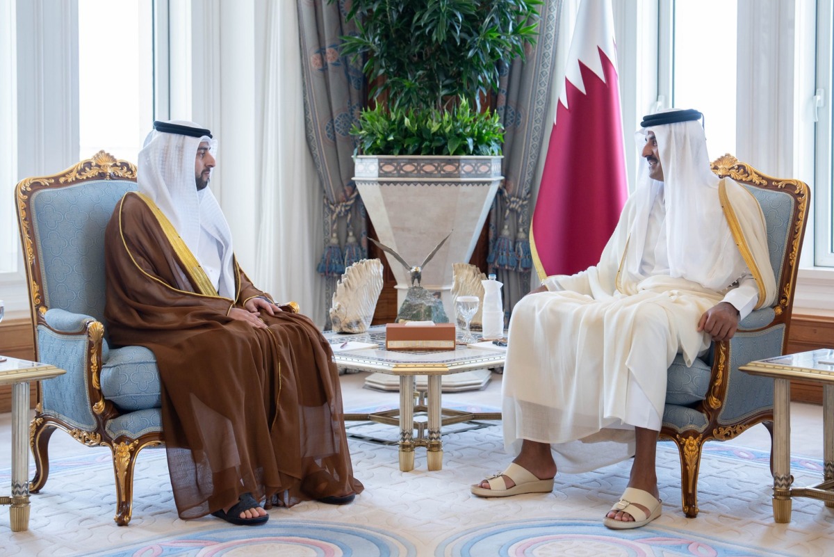 Doha, Qatar: The Amir HH Sheikh Tamim bin Hamad Al Thani received in his office at the Amiri Diwan this morning, HE Sheikh Zayed bin Khalifa bin Sultan bin Shakhboot Al Nahyan, Ambassador of the United Arab Emirates, to greet His Highness on the occasion of the end of his term in the country.