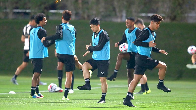 Al Sadd’s players in action during a training session on the eve of today’s FIFA Club World Cup quarter-final match against CF Monterrey of Mexico. Pic: Anwar Sadath