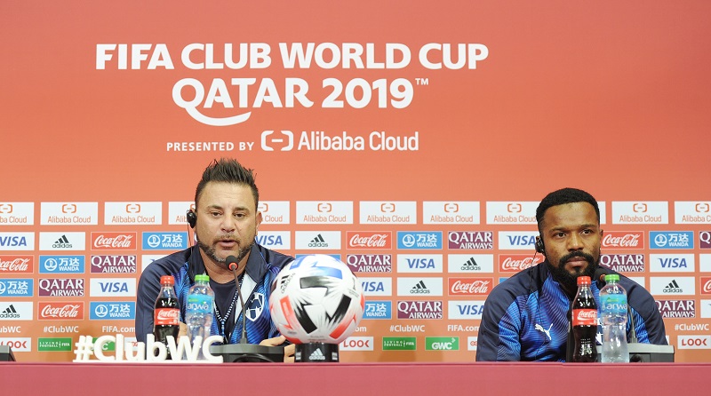 Monterrey manager Antonio Mohamed  (left) speaks during a pre-match press conference in Doha on the eve of today’s FIFA Club World Cup quarter-final match against Al Sadd.