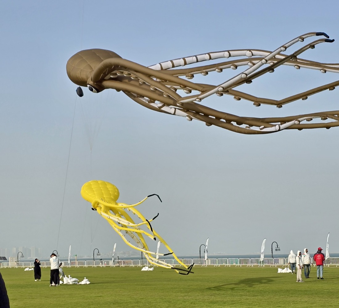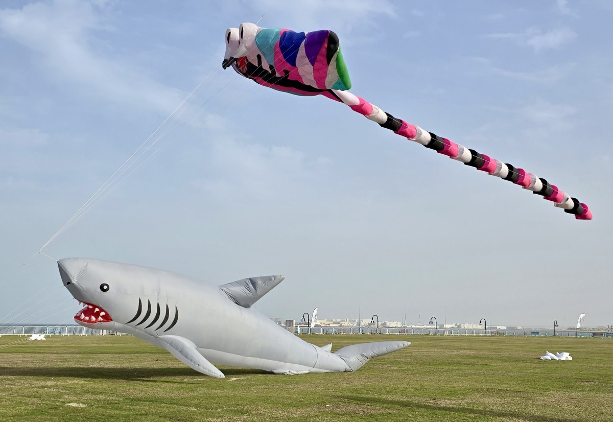 She added that their team brought several large kites, including “a 27-metre crocodile” and “a big whale shark,” as well as LED kites for night flying.