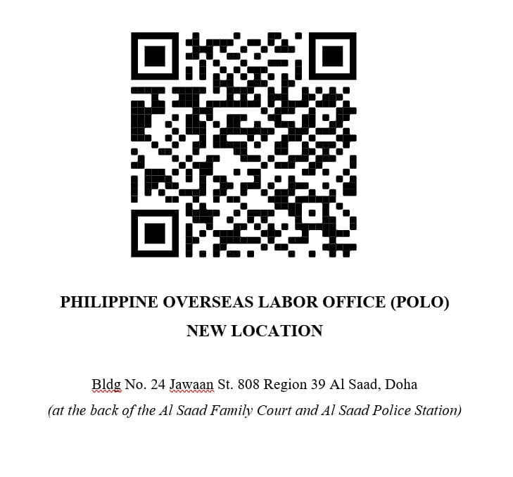 Doha: The Philippine Overseas Labor Office (POLO) in Qatar announced the transfer of its office to a new location.