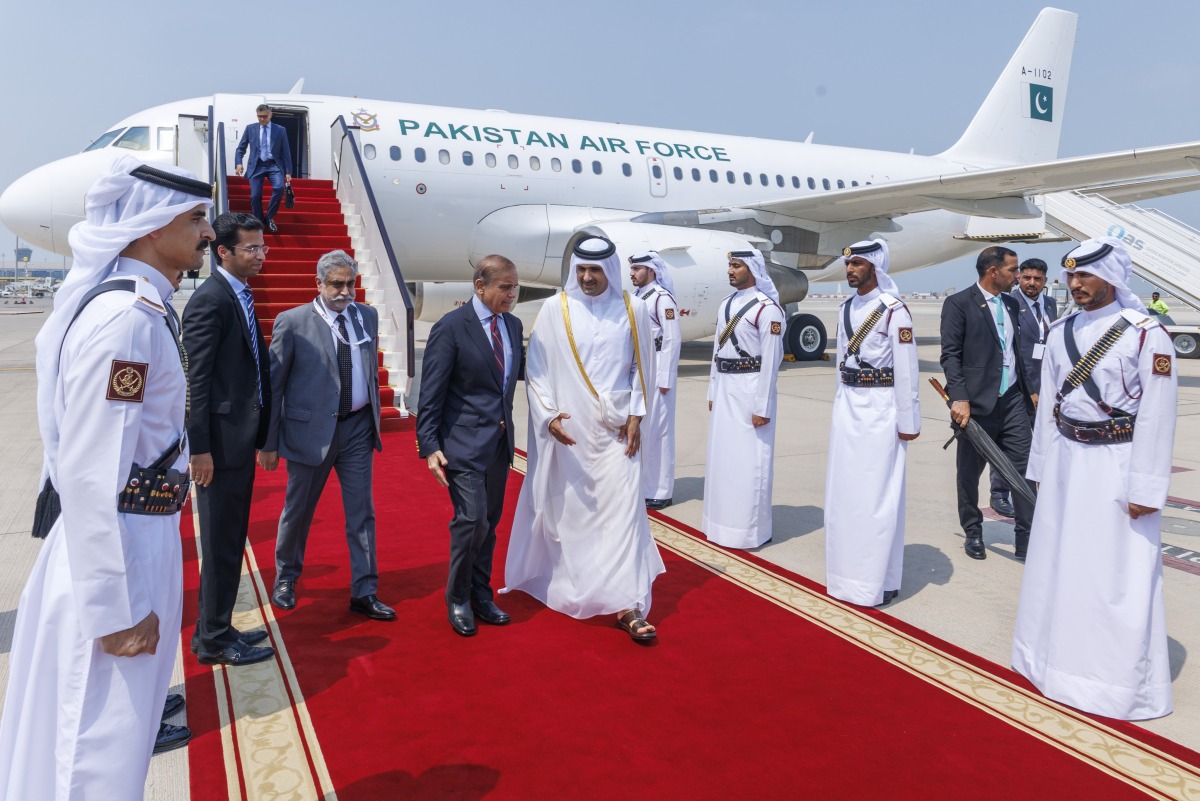 Prime Minister of the Islamic Republic of Pakistan HE Muhammad Shehbaz Sharif arrived in Doha on Monday to participate in the Emergency Arab-Islamic Summit.