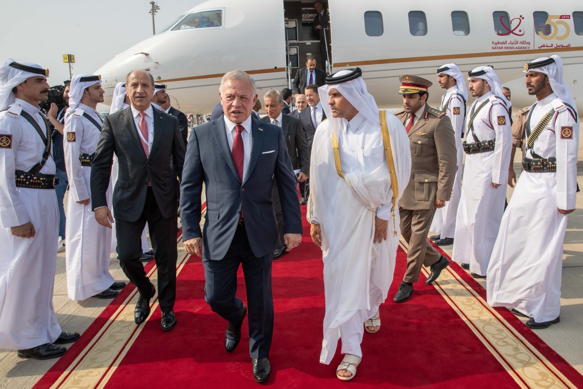 His Majesty King Abdullah II bin Al Hussein of the Hashemite Kingdom of Jordan arrived in Doha on Monday to participate in the emergency Arab-Islamic summit scheduled for today.