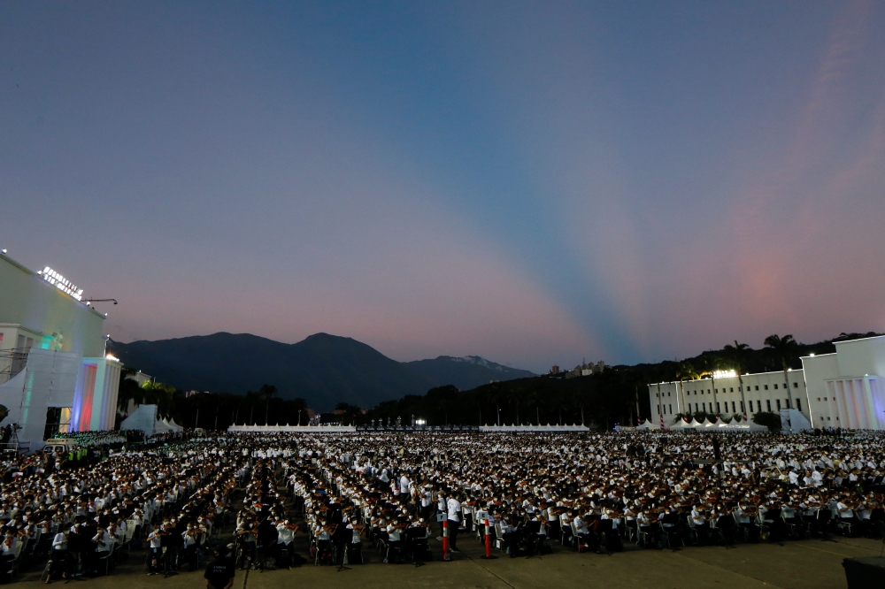 The attempt, by the country's National System of Youth and Children's Orchestras, known as "The System", would beat a Russian record set two years ago and will be judged by Guinness in the next 10 days.