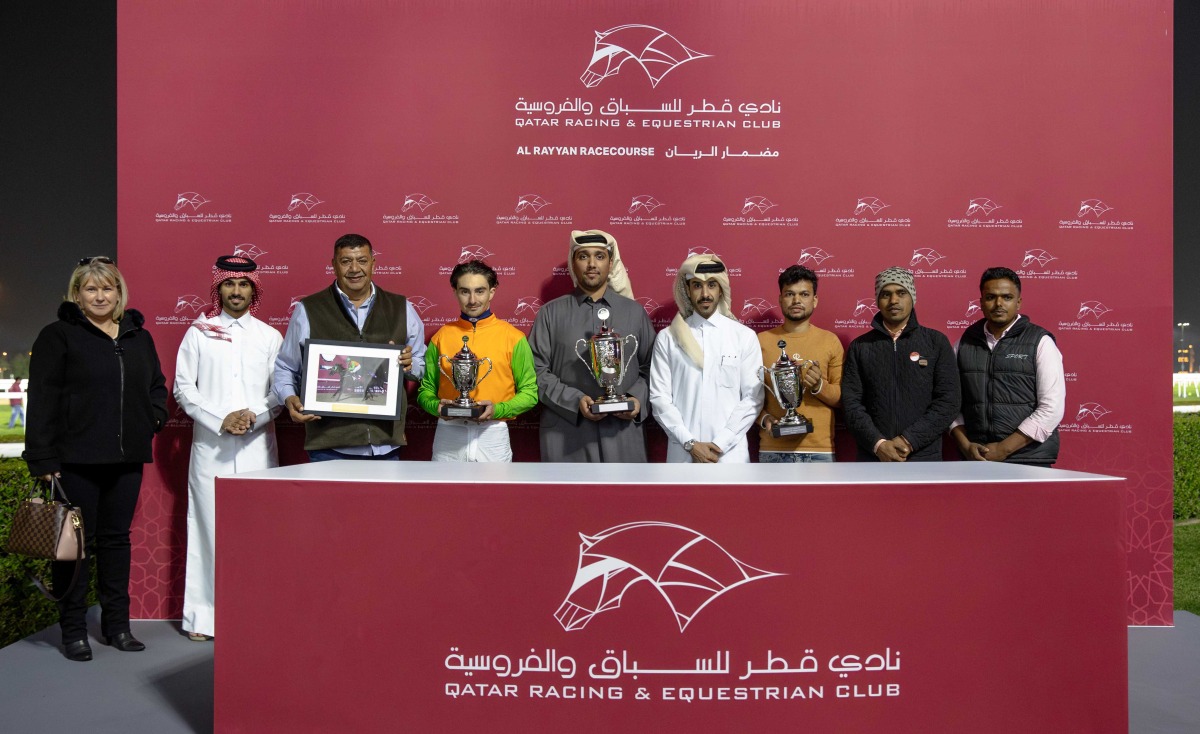 Trained by Ahmed Kobeissi, the nine-year-old veteran produced a scintillating late surge in the home straight, storming past the competitors to secure an impressive three-length victory. Deputy Director of the QREC Registration & Studbook Department Saad Ali Al Kubaisi presented trophies to the winners.