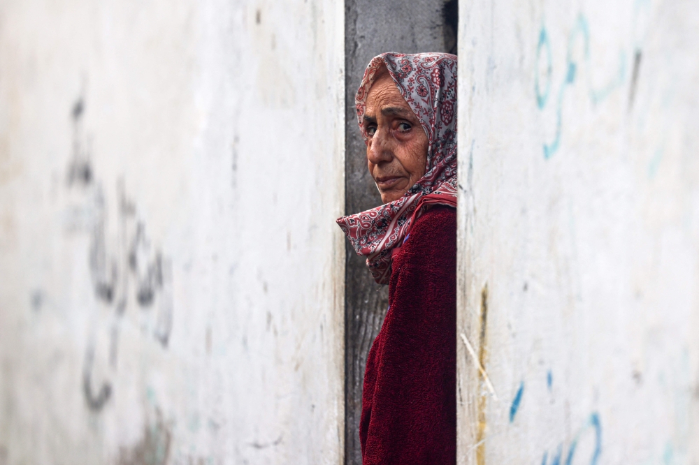 A Palestinian woman stands at al-Najar hospital in Rafah in the southern Gaza Strip on February 16, 2024. (Photo by Mohammed Abed / AFP)