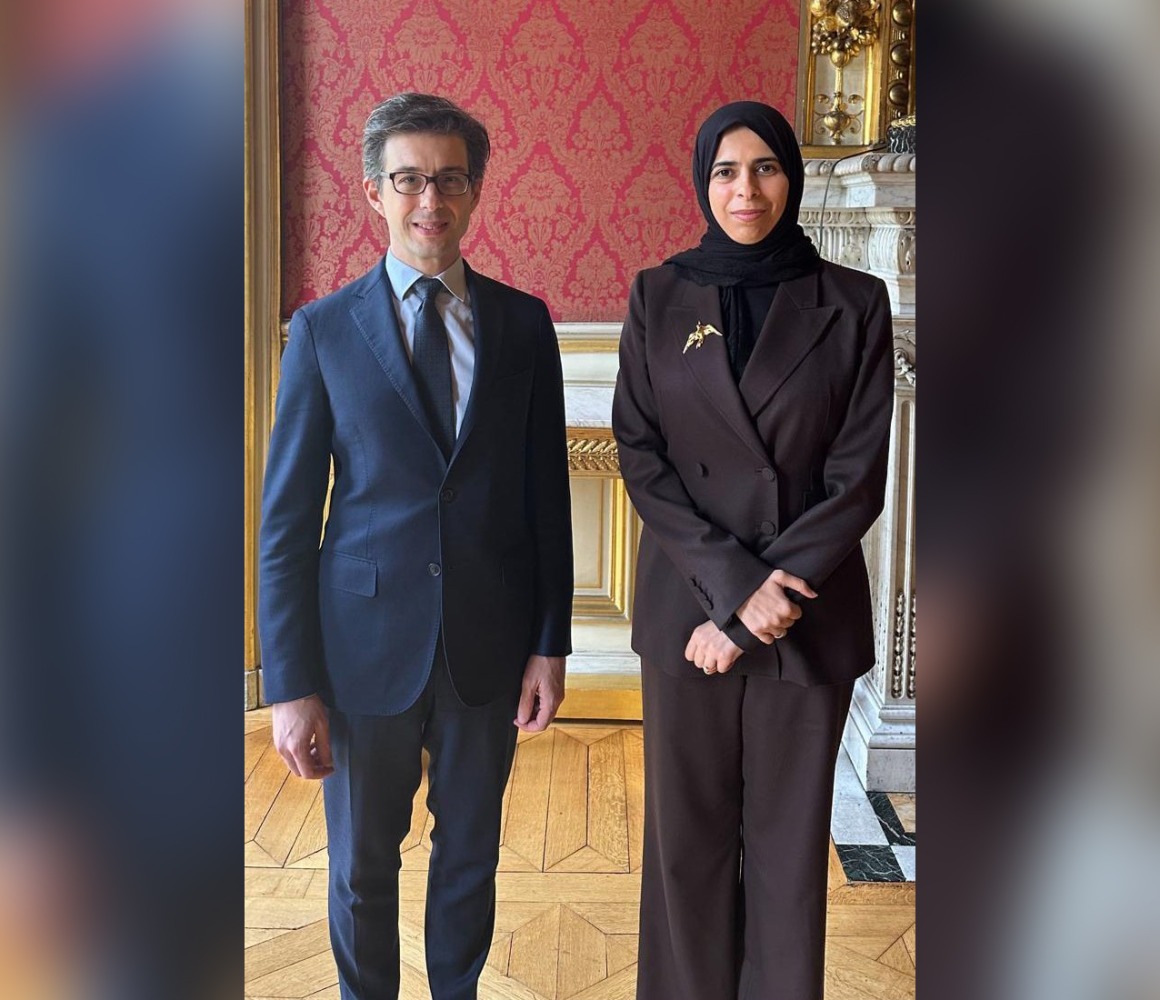 Paris: Minister of State for International Cooperation at the Ministry of Foreign Affairs HE Lolwah bint Rashid Al Khater met on Tuesday in Paris with Cabinet Director of the French Minister of Foreign and European Affairs HE Luis Vassy and Director of the Crisis and Support Center of the French Ministry of Foreign Affairs HE Philippe Lalliot.
