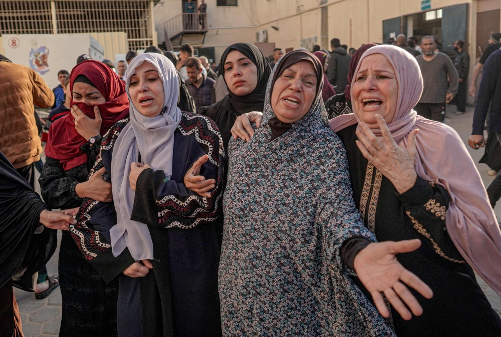 Palestinians mourn the death of loved ones following Israeli bombardment in Maghazi in the central Gaza Strip, on April 16, 2024. (Photo by AFP)