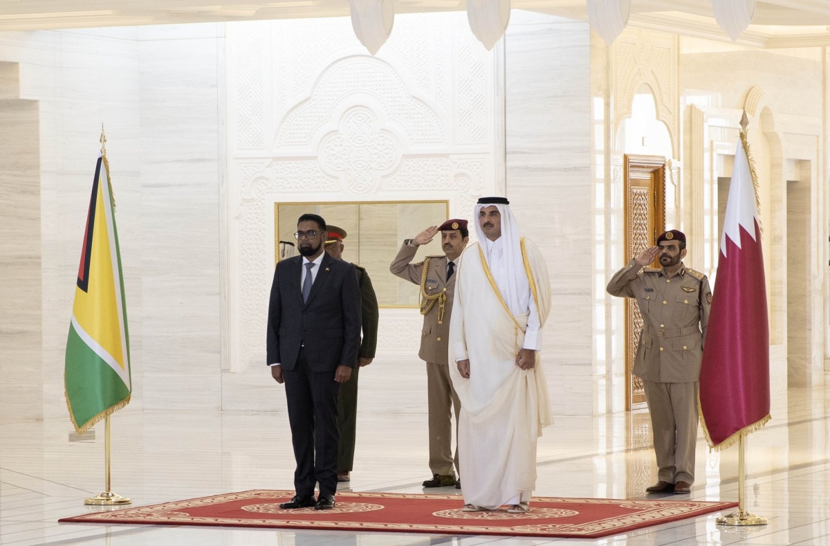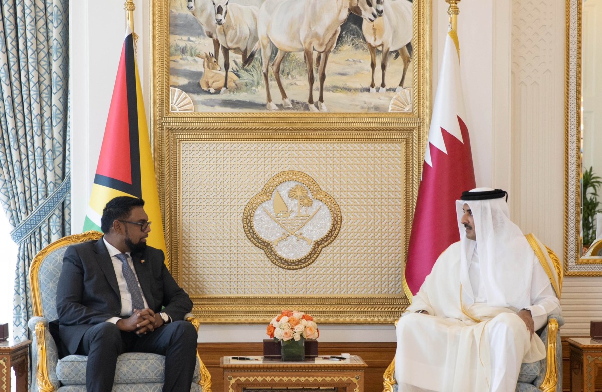 Doha: The Amir HH Sheikh Tamim bin Hamad Al Thani and President of the Cooperative Republic of Guyana H E Dr Mohamed Irfaan Ali, held an official talks session on Tuesday morning at the Amiri Diwan.