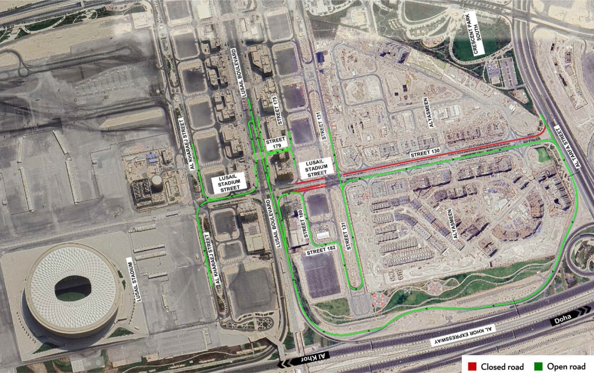 Additionally, a full closure will be in place on Street No. (130) from Al Tarfa Street for northbound traffic heading to Darb Lusail Street and southbound traffic from Darb Lusail Street to Street (131), continuing until October 1, 2024.