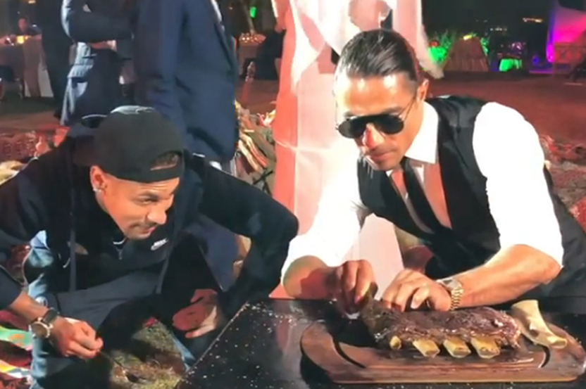 In one of the video Brazilian superstar of football Neymar can be seen following the chief’s action eagerly and even attempting to salt the meet in the now famous style of Salt Bae of arching his hand and sent a pinch of salt flowing from his palm along his arm onto a medium-rare steak or a perfectly cooked lamb ribs.