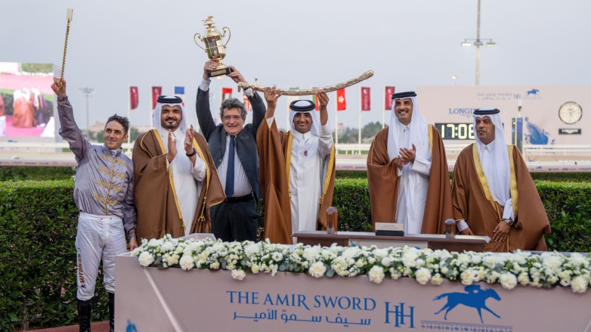 HH the Amir crowned Abdulrahman bin Fahd Al Attiyah with HH the Amir Silver Sword - Purebred Arabian (4yo Only) (Class 1) after Molfit (FR) secured the 1850m sixth race, and awarded Abdulatif Zainal Al Emadi with HH the Amir Shalfa after Pazeer colt finished first in the fifth Thoroughbred Open Handicap (4yo and up) (Class 2), for a 2000m contest.