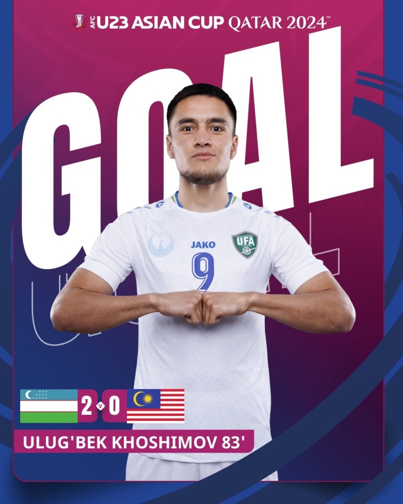 ???????? Ulug'bek Khoshimov delivers a clinical finish!#AFCU23 | #UZBvMAS pic.twitter.com/sVmmTwk5Iw