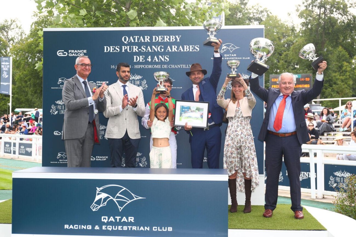 Chantilly: President of the Asian Equestrian Federation and Qatar Racing and Equestrian Club's (QREC) Vice Chairman Hamad bin Abdulrahman Al Attiya, presented the trophies to the winners of the QREC-sponsored the Gr1 PA Qatar Derby des Pur-Sang Arabes de 4 Ans, yesterday.