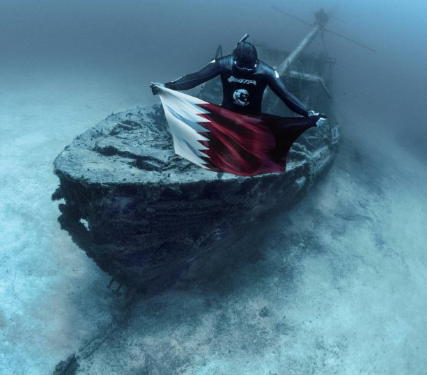 Amro M Al Hamad, a Qatari national, has expressed his loyalty with the Emir H H Sheikh Tamim bin Hamad Al Thani and Qatar in a unique way. He organised an underwater photo shoot wearing diving costumes carrying “Tamim Al Majd” image on his chest and Qatari flag in hands at Canary Islands. Social media users are appreciating his effort terming the shot “stunning”, “superb”, “really epic one”, and all.
