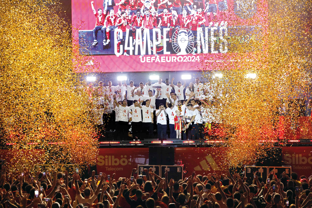 Madrid: Thousands of people in Madrid welcomed Spain’s squad home after they beat England to win Euro 2024. After receptions with King Felipe VI and prime minister Pedro Sanchez, La Roja were paraded through the capital city on an open-top bus.