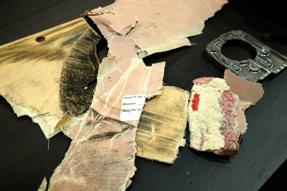 A detailed view of debris from the car of Carlos Sainz of Spain and Ferrari after stopping on track during practice ahead of the F1 Grand Prix of Las Vegas at Las Vegas Strip Circuit on November 16, 2023 in Las Vegas, Nevada. Photo by Chris Graythen / GETTY IMAGES NORTH AMERICA / Getty Images via AFP