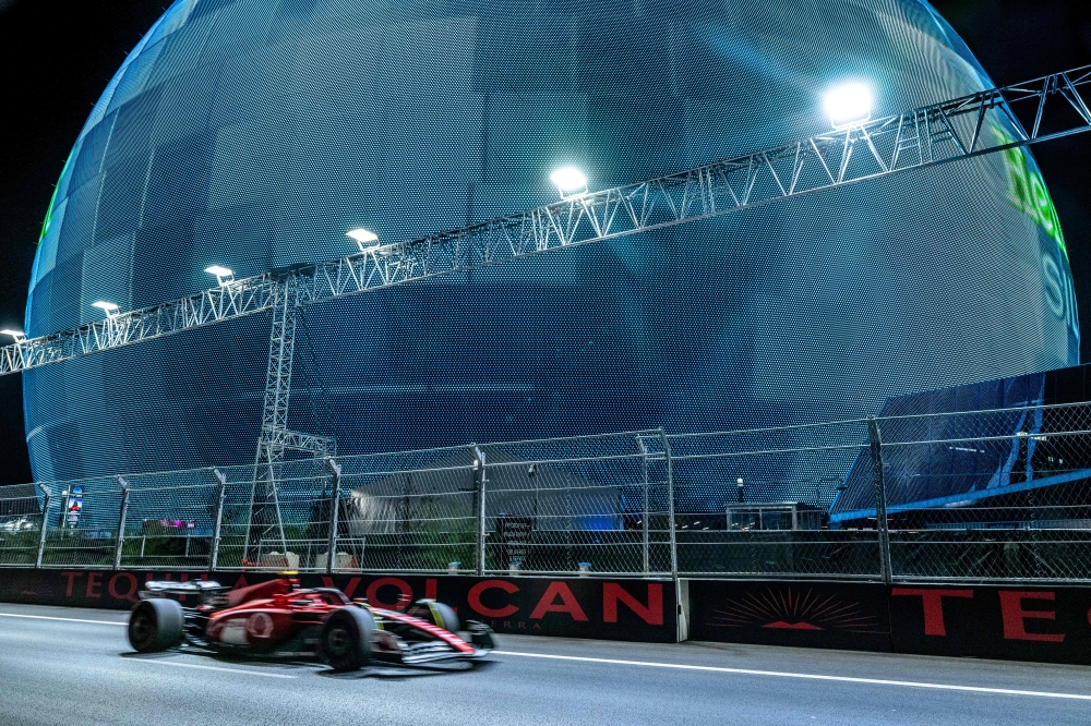 Ferrari's Spanish driver Carlos Sainz Jr., races during the first practice session for the Las Vegas Formula One Grand Prix on November 16, 2023, in Las Vegas, Nevada. Photo by Jim WATSON / AFP