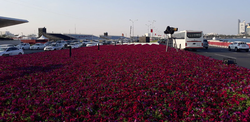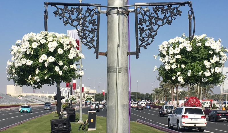 Al Khoury said that to decorate the Corniche for the National Day celebrations they have been placed 9 large flower towers, 13 small flower towers, 92 traditional flower vases (Arabic coffee cups) and 100 scattered flower basins along the parade route.