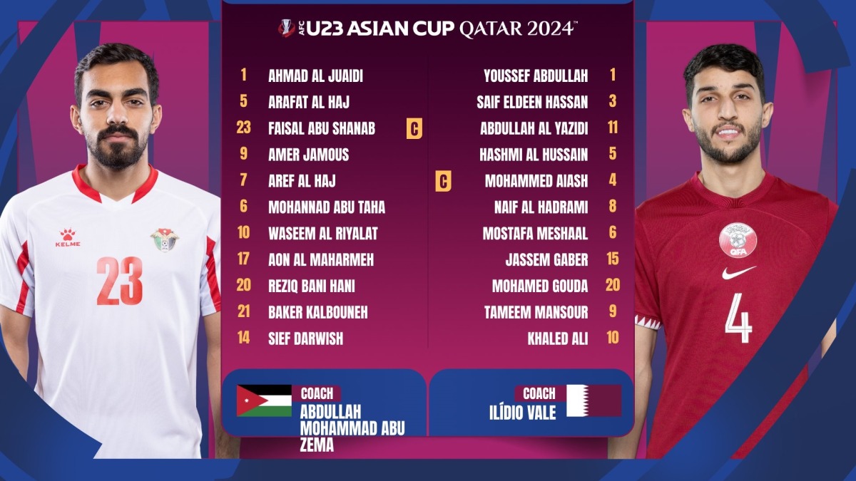 Coach Ilídio Vale announced the lineup for the Qatari team in their game against Jordan at the AFC U23 Asian Cup Qatar 2024.