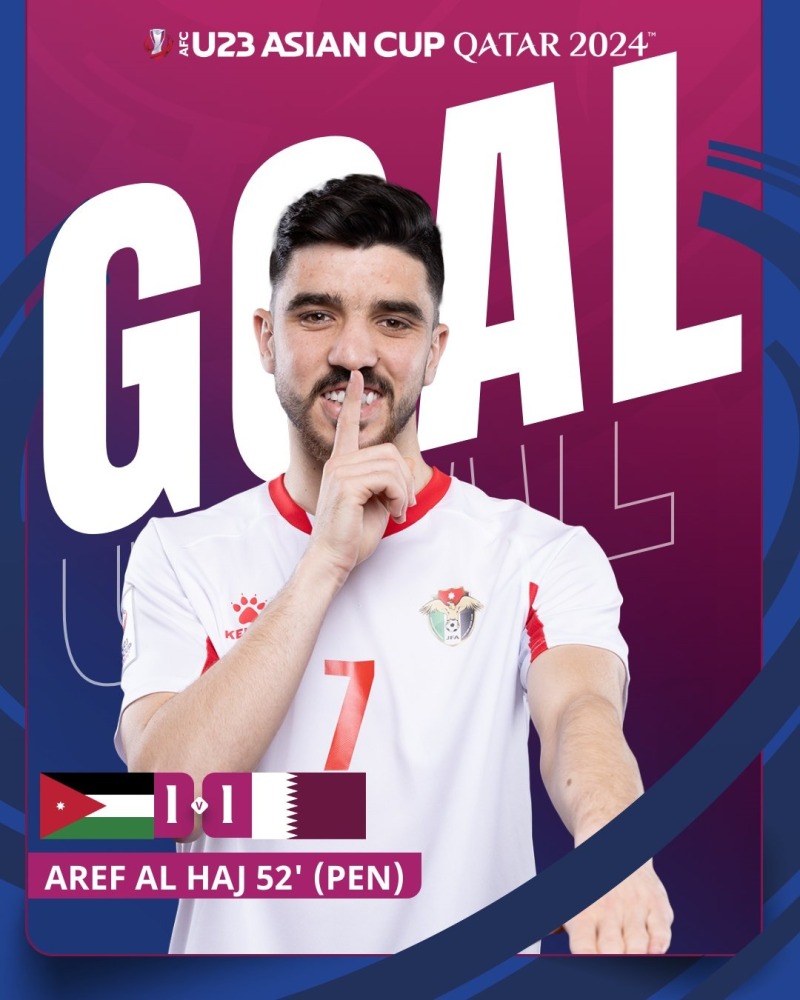 منتخب الأردن يدرك التعادل 1 - 1 أمام منتخبنا الوطني عبر عارف الحاج من ركلة جزاء .. كأس آسيا تحت 23 عاماً#قطر_الأردن || #هَيّا_آسيا || #قنوات_الكاس || #AFCU23 pic.twitter.com/wChutxnYeq