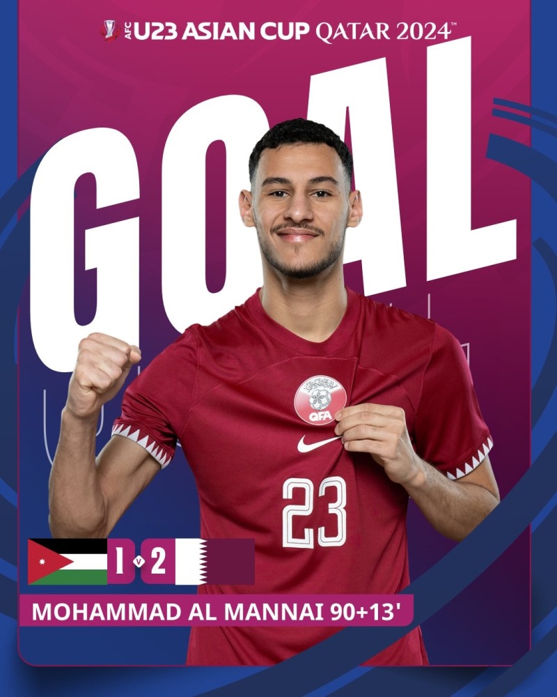 Qatar ???????? snatches the win against Jordan ???????? with two goals against one and takes the lead in Group A with 6 points at AFC U23 Asian Cup Qatar 2024 at the Jassim Bin Hamad Stadium.