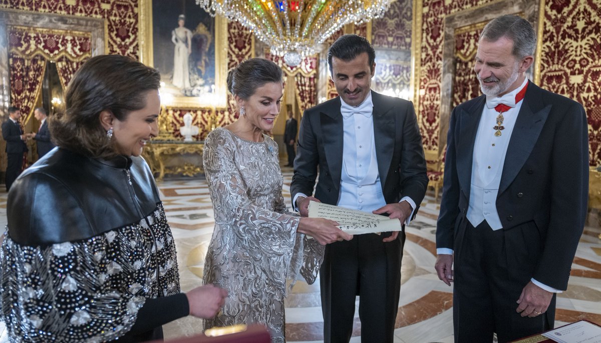 Madrid: The Amir HH Sheikh Tamim bin Hamad Al-Thani and H H Sheikha Jawaher bint Hamad bin Suhaim Al-Thani, Consort of HH the Amir, attended the state dinner banquet hosted by HM King Felipe VI of Spain and HM Queen Letizia, in honour of Their Highnesses at the Royal Palace on Tuesday.
