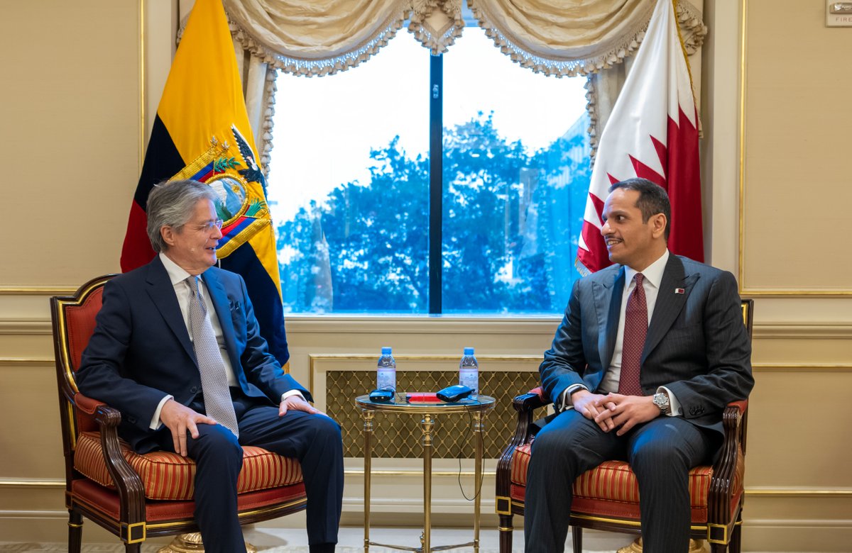 New York: President of the Republic of Ecuador HE Guillermo Lasso met with Deputy Prime Minister and Minister of Foreign Affairs HE Sheikh Mohammed bin Abdulrahman Al-Thani, on the sidelines of the 77th session of the United Nations General Assembly in New York.