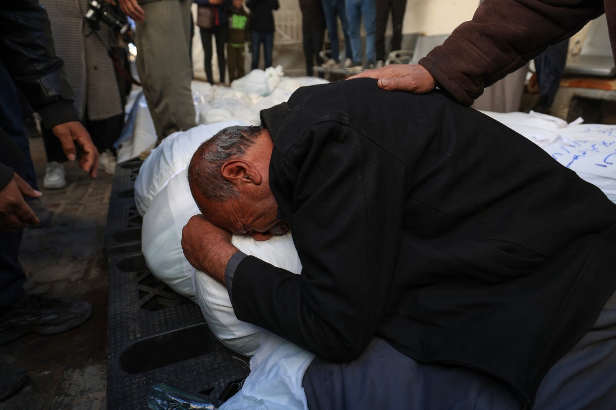 Palestinians mourn the death of loved ones following Israeli bombardment on January 18, 2024, in Rafah in the southern Gaza Strip. Photo by AFP