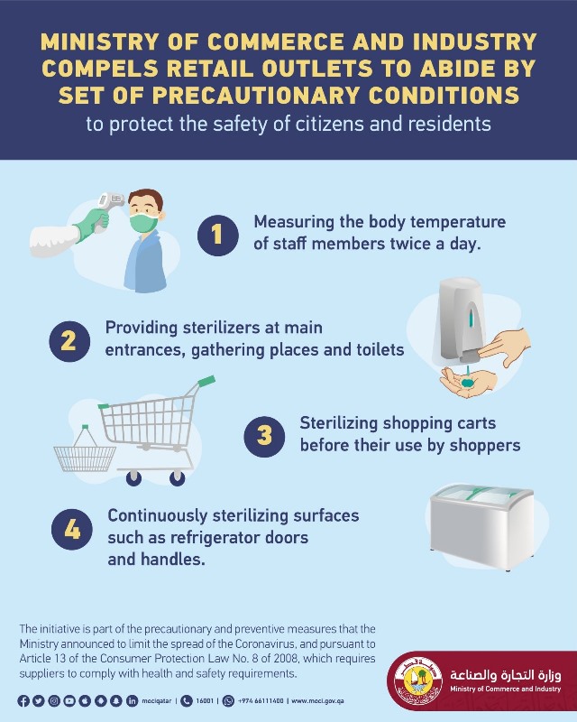 Doha: The Ministry of Commerce and Industry has instructed retail outlets to abide by a set of precautionary conditions to protect the safety of citizens and residents.