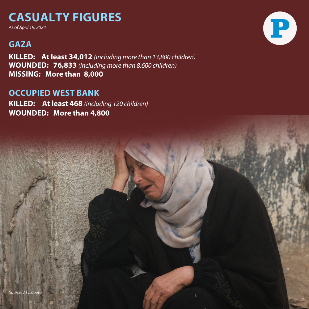Gaza: The number of casualties due to the Israeli aggression on the Gaza enclave has risen to 34,012 martyrs and 76,833 injured, Ministry of Health in Gaza reported in its daily statistical figures.