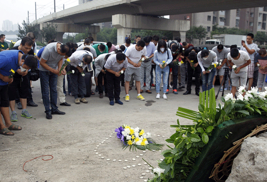 Tianjin: Heavy rain fell yesterday on the remains of a Chinese industrial site devastated by giant explosions, complicating clean-up efforts and heightening fears about toxic contamination as ceremonies were held to mark the disaster’s 114 deaths. Around 700 tonnes of highly toxic sodium cyanide were at the site in the northern port of Tianjin, officials say, and water could spread it more widely.