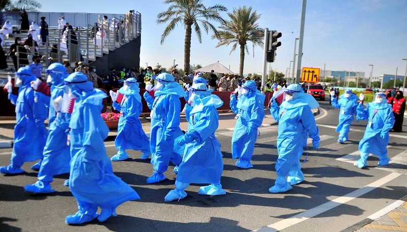 First time health workers ‘White Army’ consisting of doctors, nurses, Qatar Red Crescent Society employees and volunteers took part in the parade, which was in recognition of their roles in fight against coronavirus.