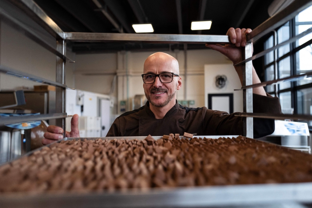 Guido Castagna poses in his laboratory where the famous chocolate treat shaped like lingots 'Gianduiotto' is made with cacao, sugar and hazelnuts, on December 12, 2023 in Giaveno near Turin, Northwestern Italy. Photo by MARCO BERTORELLO / AFP