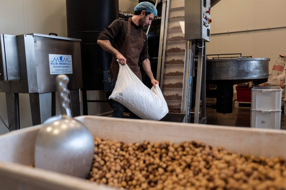 In his workshop outside the northwestern Italian city, Luca Ballesio kneads chocolate with spatulas before expertly slicing off pieces and lining them up on a tray.