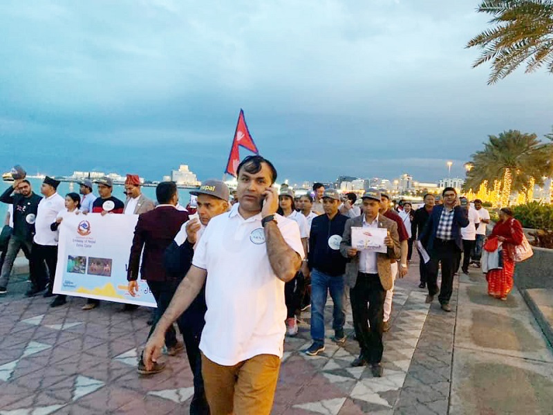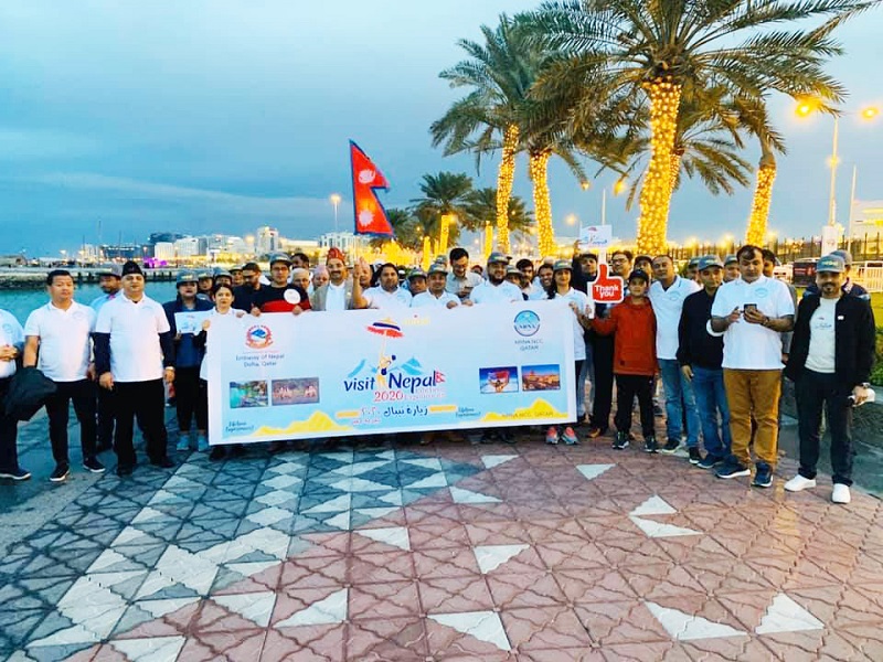 Embassy of Nepal in Doha, in coordination with the Non-Residential Nepali Association (NRNA), NCC Qatar, had organised a Visit Nepal Year (VNY) 2020 Promotional Walk recently in the Corniche area of Doha.