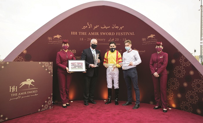 Khalifa Bin Sheail Al Kuwari’s Sir Arthur Dayne, saddled Gassim Ghazali, was ridden to third by Maxime Guyon.