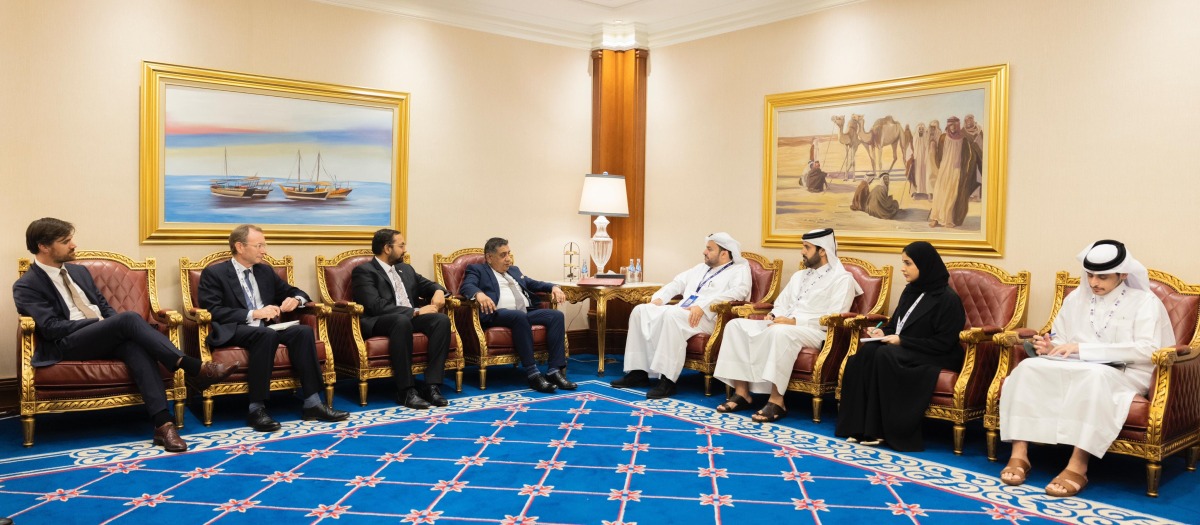 Doha, Qatar: Minister of State at the Ministry of Foreign Affairs HE Dr. Mohammed bin Abdulaziz bin Saleh Al Khulaifi met separately today with Chairperson of the African Union Commission HE Moussa Faki Mahamat, HE Lord of Wimbledon, Minister of State for the Middle East, South Asia and United Nations at the United Kingdom's Foreign, Commonwealth and Development Office Lord Tariq Ahmed, HE US Special Representative for Afghanistan Thomas West, and HE US Special Envoy for Hostage Affairs Roger Carstens.