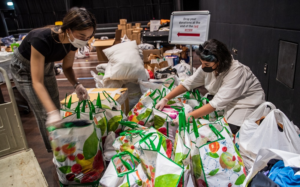 QF volunteers sorting and packing donations at Education City.