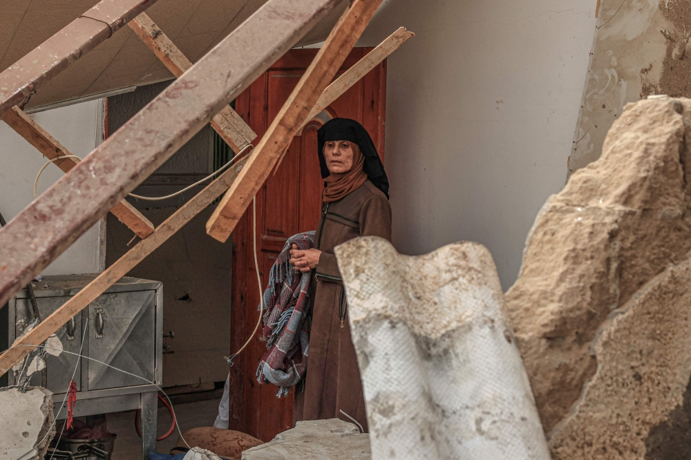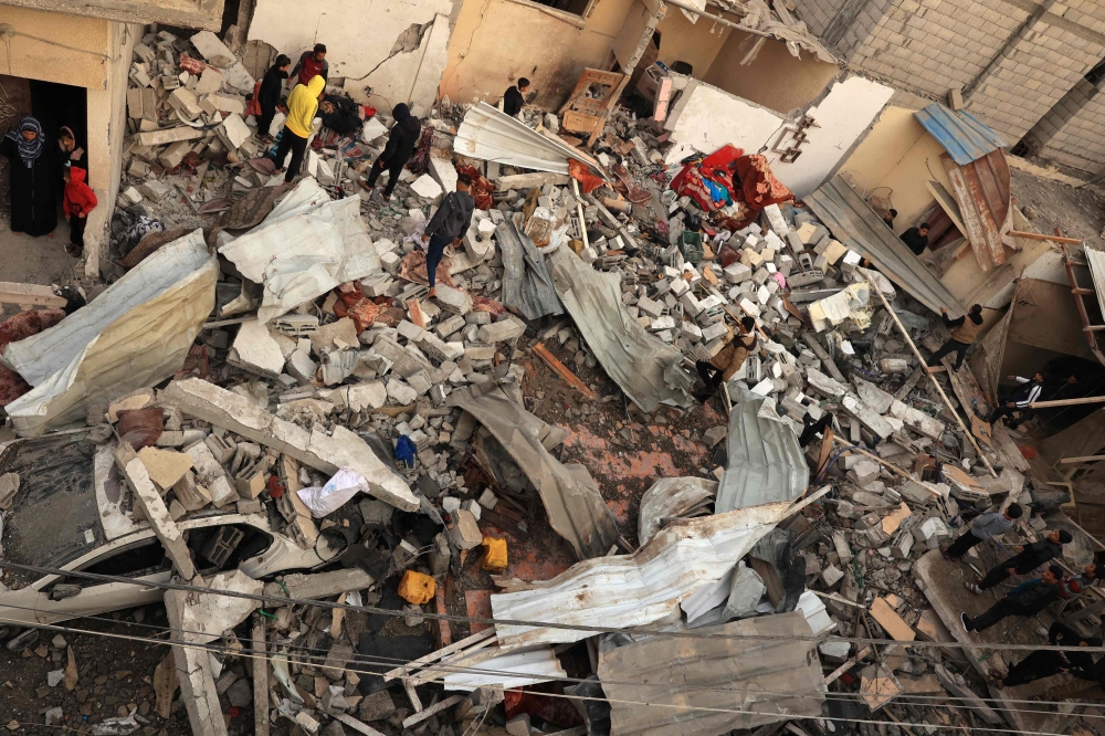 Palestinians inspect a destroyed house after Israeli airstrikes in Rafah, in the southern Gaza Strip on December 20, 2023. Photos by SAID KHATIB / AFP
