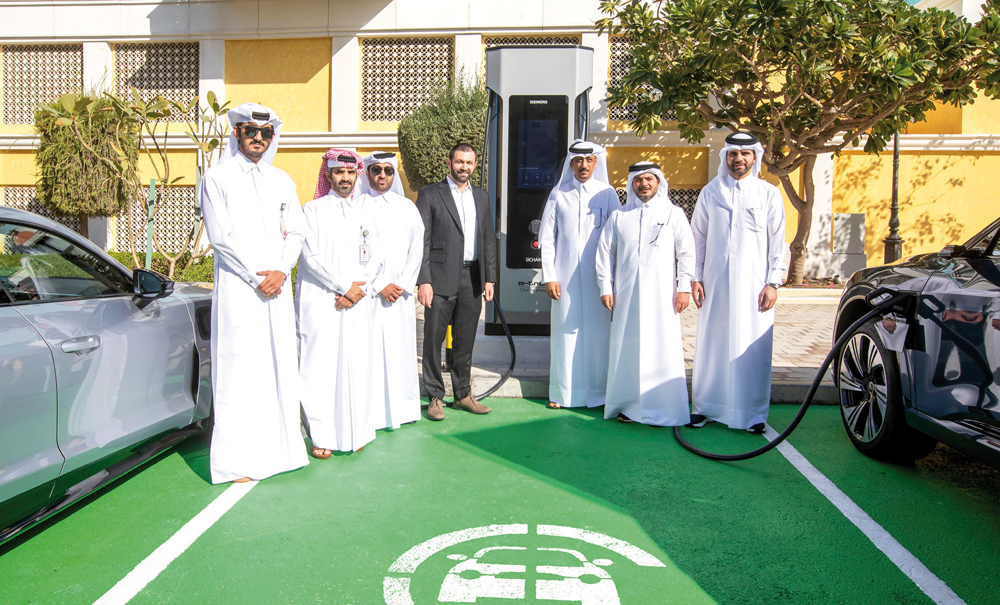 Officials pose during inauguration of the new chargers for electric vehicles at The Pearl Island.